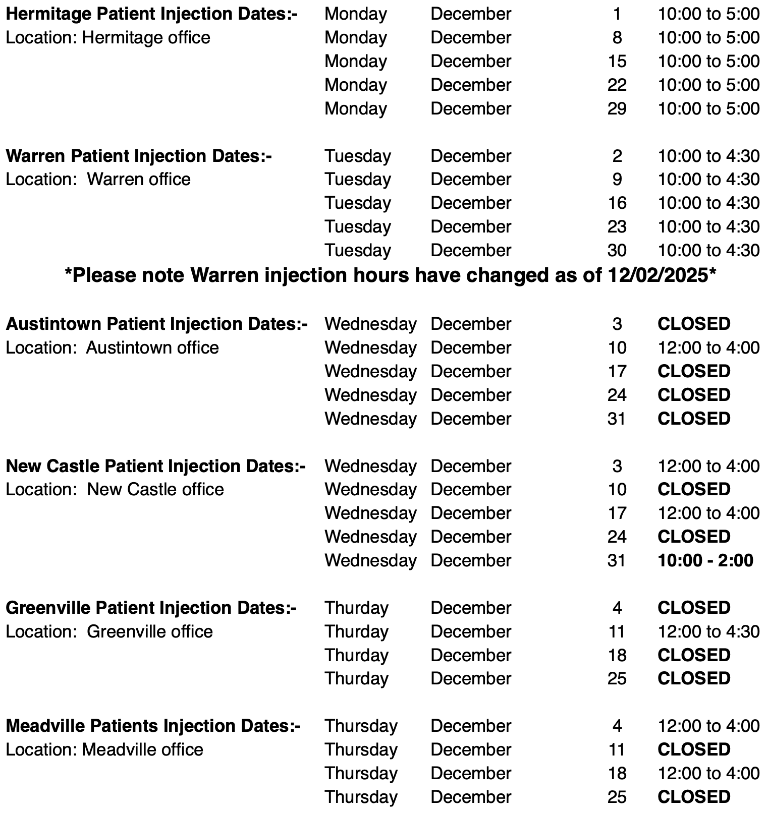 Due to a death in Dr. Cano’s family, appointments and injections are cancelled this week. We apologize for any inconvenience.