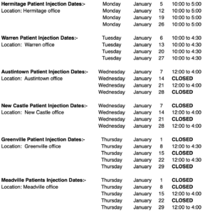 Injection hours and dates are subject to change. View Schedule >